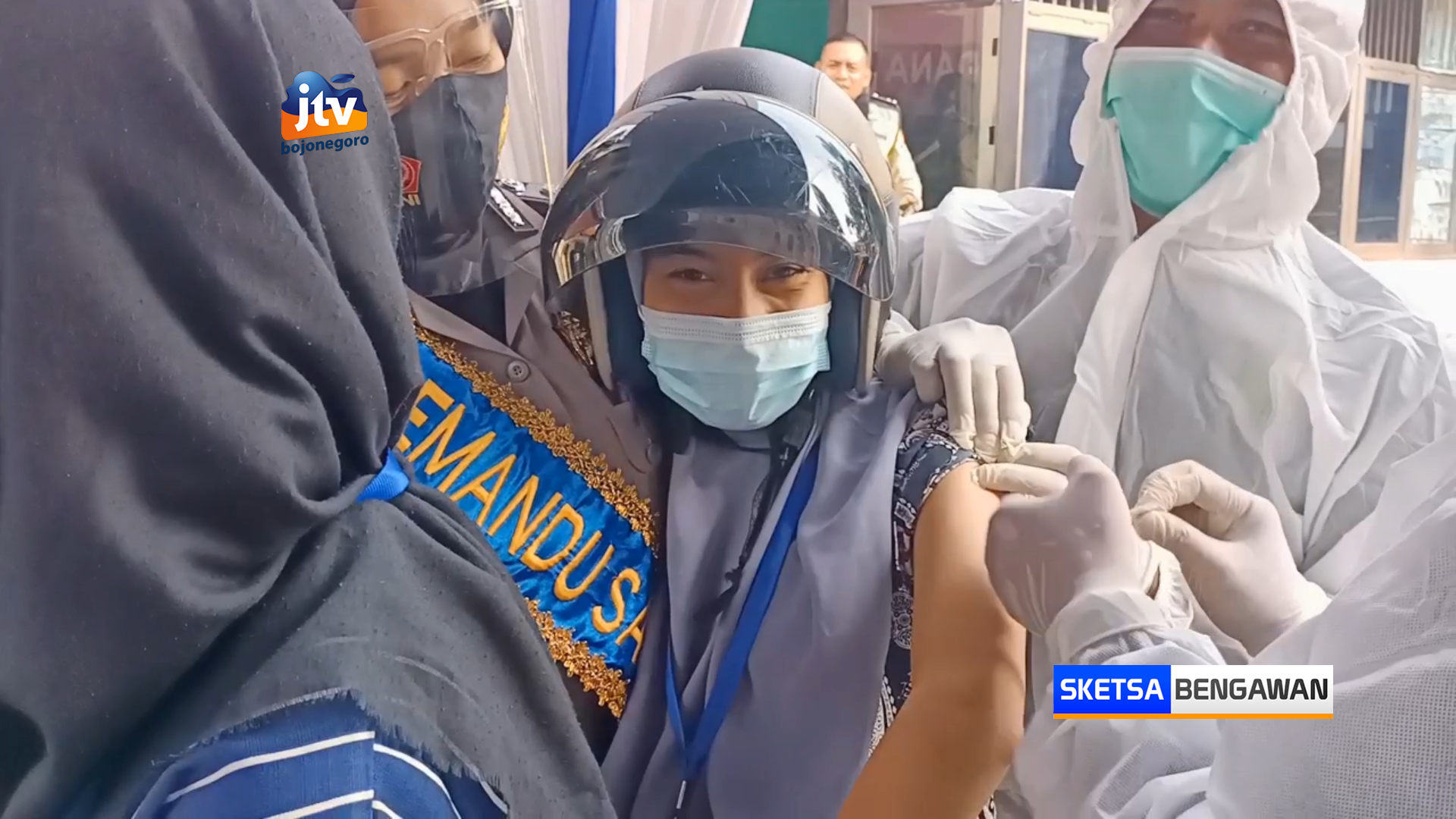 BOJONEGORO - Vaksinasi masal dalam rangka rangkaian hari ulang tahun (hut) bhayangkara ke 75, berlangsung di satlantas polres bojonegoro, vaksinasi dengan sistem drive thru ini diikuti oleh para pengendara roda dua dan roda empat yang sedang melakukan permohonan SIM.
