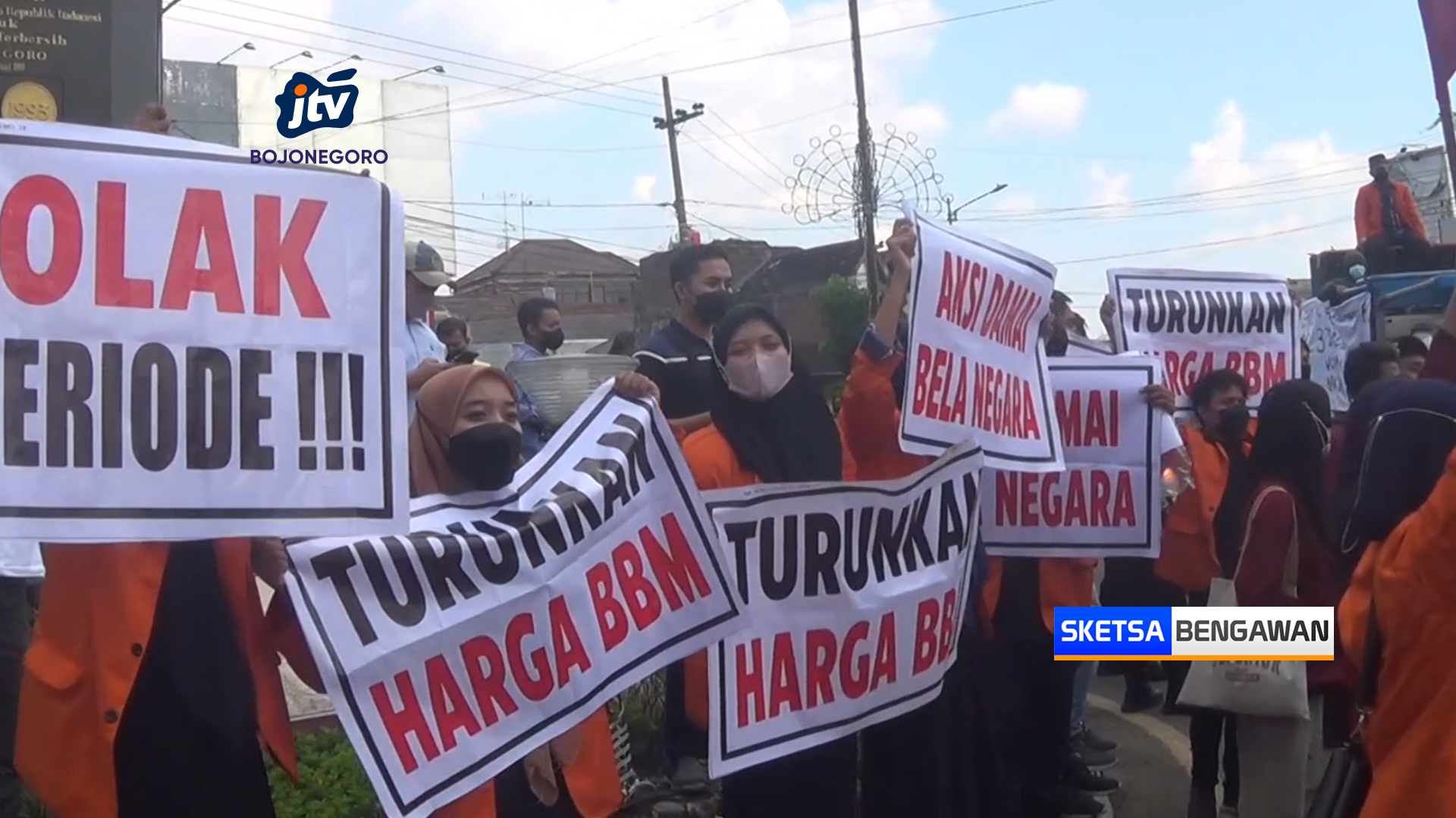 BOJONEGORO - Sedikitnya 50 mahasiswa yang tergabung dalam ikatan mahasiswa muhammadiyah atau imm, menggelar aksi di bundaran adipura bojonegoro, pada senin sore. Aksi protes ini dilakukan para mahasiswa untuk menolak kenaikan harga bbm, menolak pencabutan subsidi pupuk, dan menolak wacana periode 3 presiden.