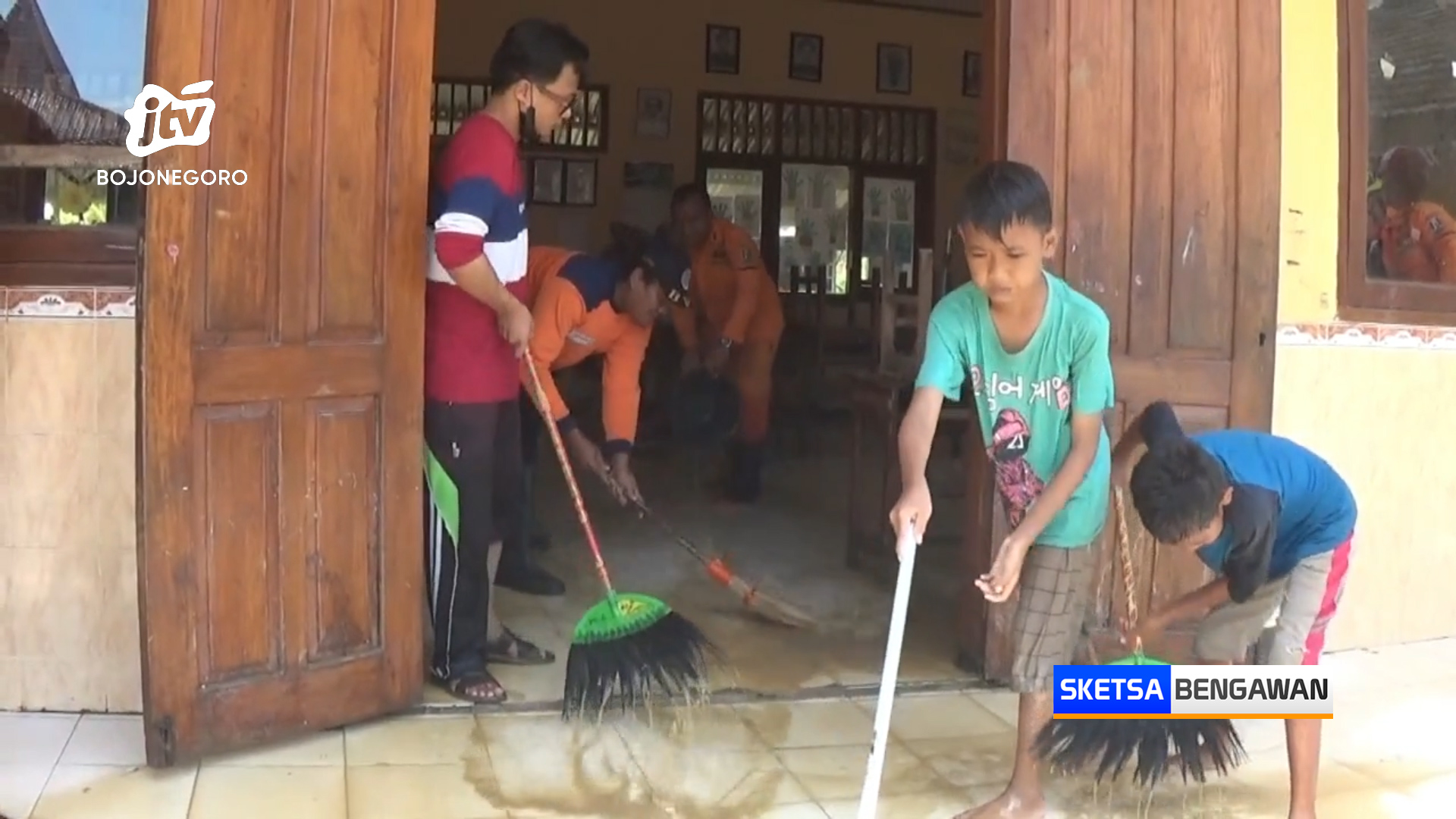 “Hari ini diliburkan, kalau besok sudah kering sudah bisa masuk. Ini tadi kantornya sudah mulai saya bersihkan bersama teman-teman,” jelas Sarmini, Kepala SDN Selogabus Dua.